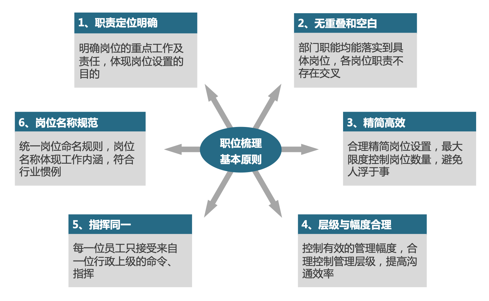 依據核心流程框架的梳理,對各部門的崗位設置進行優(yōu)化,明確各崗位的關鍵職責。