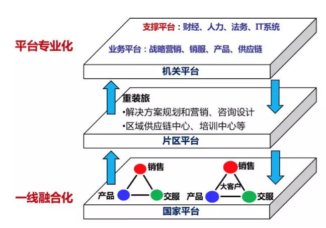 華為“項目型/鐵三角”+“平臺型”組織架構(gòu)示意圖如下所示: