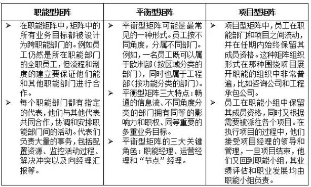 二、矩陣組織的三種形式