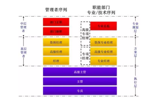 筆者在做一家國(guó)企崗位設(shè)計(jì)時(shí),基于“因事設(shè)崗和專業(yè)分工”的原則,基層崗位均設(shè)置為“XX主管”。以前在很多民企都是如此操作的,都沒(méi)有問(wèn)題。崗位設(shè)計(jì)方案拿出后,相關(guān)部門的負(fù)責(zé)人卻認(rèn)為部分基層員工有較強(qiáng)的工作能力,在企業(yè)工作了20、30年,有的還擔(dān)任過(guò)整合前企業(yè)的部門負(fù)責(zé)人,根本無(wú)法接受只是“XX主管”的崗位。后來(lái)確實(shí)也出現(xiàn)過(guò)有員工因無(wú)法接受擬聘職位而想提出離職的現(xiàn)象?;诖耍覀儗?duì)基層崗位做了系列化設(shè)計(jì)(如圖一),很好地解決這個(gè)老大難的問(wèn)題。