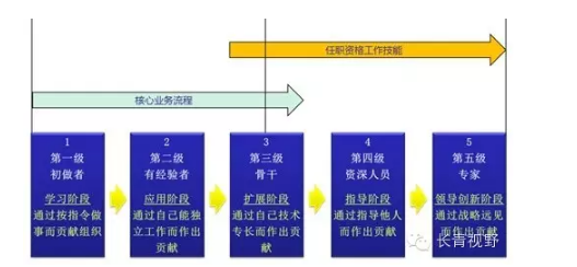 由于這些企業(yè)沒有建立較為系統(tǒng)的人才評(píng)價(jià)體系,往往直接采用通用五級(jí)模型為基準(zhǔn)設(shè)計(jì)學(xué)習(xí)路徑圖。由于通用五級(jí)模型的針對(duì)性不強(qiáng),失去了對(duì)學(xué)習(xí)方案設(shè)計(jì)的指導(dǎo)作用。但是,對(duì)于已經(jīng)構(gòu)建起任職資格體系的企業(yè)來說,進(jìn)一步設(shè)計(jì)學(xué)習(xí)路徑圖可以說是水到渠成、事半功倍。因此,我們常常說任職資格體系既是員工的職業(yè)發(fā)展規(guī)劃體系、專業(yè)等級(jí)晉升評(píng)價(jià)體系,也是一套員工能力發(fā)展、賦能體系。
