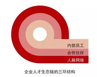 很多企業(yè)都非常重視自身人才隊伍的建設(shè),也就是內(nèi)部人才的選拔、培養(yǎng)、使用和激勵,但是往往忽略了企業(yè)業(yè)務(wù)生態(tài)發(fā)展的關(guān)鍵要素——人才生態(tài)。人才生態(tài)是一個三環(huán)結(jié)構(gòu),分別代表了企業(yè)內(nèi)部員工、周邊合作伙以及外部人脈網(wǎng)絡(luò)。